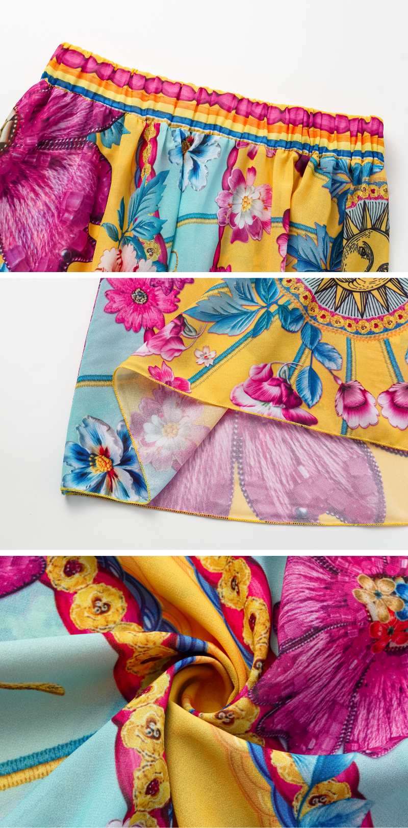 Lining Fabric:82% polyester 18% spandex - Sarong/Skirt Fabric:96% polyester 4% spandex