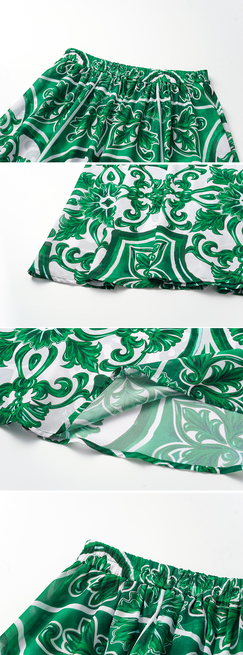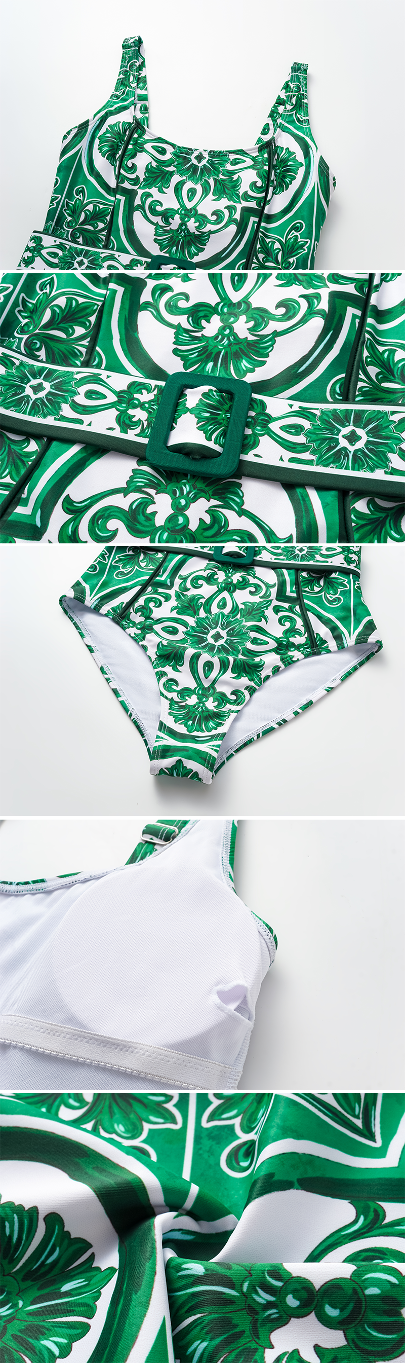 Classic Majolica Series Pattern Print One Piece Swimsuit and Pants or Skirt